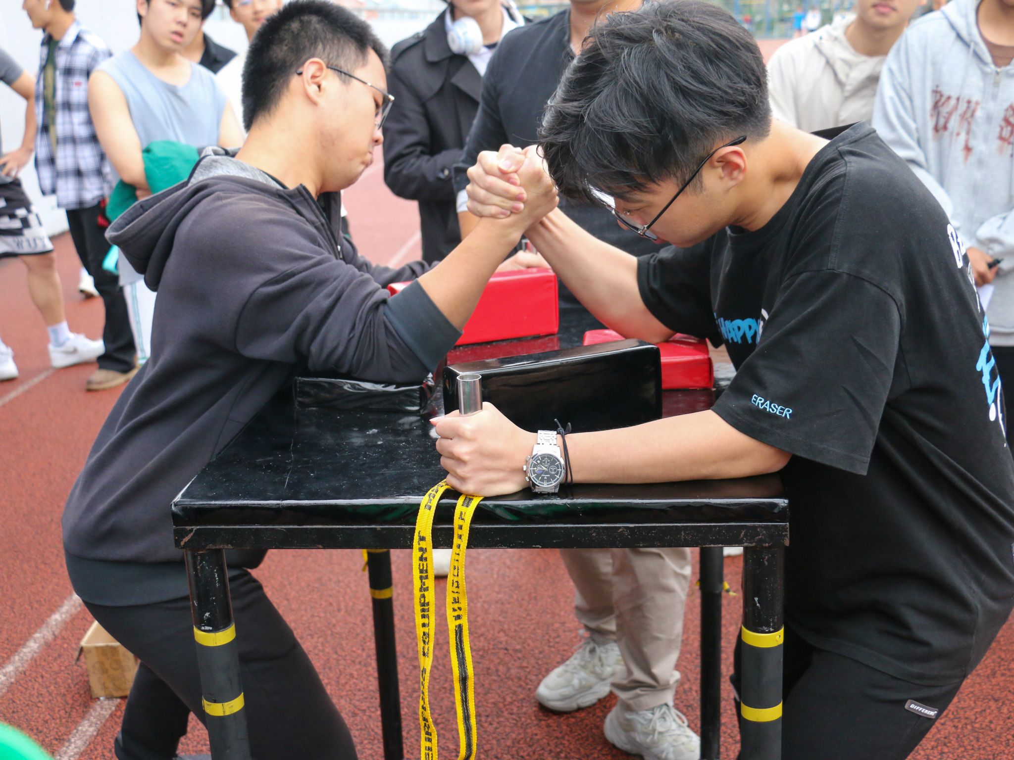 體能擂臺賽作為學校體育文化節(jié)的重要組成部分,旨在豐富校園體育文化生活,增強學生體育健身意識,提高學生體質健康水平。比賽設置男子引體向上、立定跳遠、臥推、深蹲、硬拉、農夫走、掰手腕,女子2分鐘仰臥起坐、立定跳遠、平板支撐等十個項目。精彩的賽項吸引了千余名學生踴躍報名,同學們在比賽場上揮灑汗水、全力拼搏、各展所能,比出了水平,賽出了風采。
