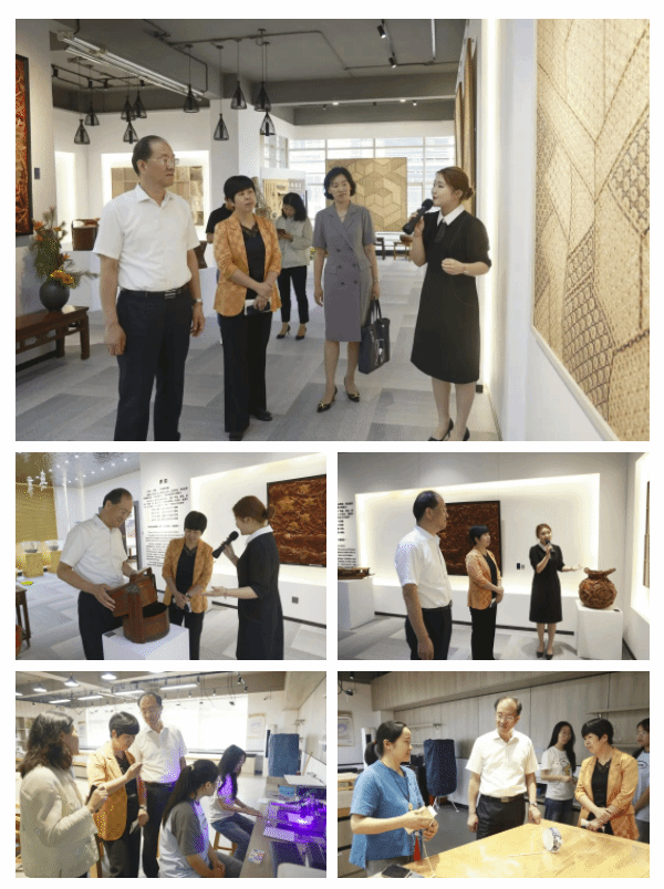 李新芳一行考察了技能大師工作室、非遺展廳、手工藝實訓(xùn)室、文化創(chuàng)意設(shè)計中心、生活美學(xué)技藝實訓(xùn)中心等教學(xué)場所和實訓(xùn)場所,與市木刻水印技能大師工作室主持人、文創(chuàng)專業(yè)學(xué)生等師生現(xiàn)場交流,了解非遺融入國民教育體系情況。