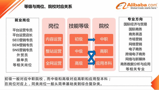 1+X跨境電商B2B數(shù)據(jù)運(yùn)營(高級)證書由阿里巴巴(中國)教育科技有限公司負(fù)責(zé)實施,該技能證書主要對應(yīng)本科專業(yè)學(xué)生,通過跨境電商平臺運(yùn)營、全網(wǎng)營銷和銷售等模塊的考核,對學(xué)生跨境電商B2B運(yùn)營技能進(jìn)行綜合評價。對于高職學(xué)生來說,該證書獲證難度相對較大。