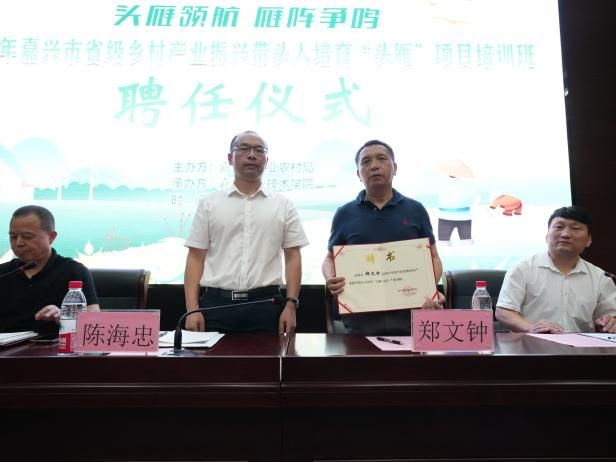7月31日上午,由嘉興市農(nóng)業(yè)農(nóng)村局主辦、嘉興職業(yè)技術(shù)學(xué)院承辦的2023年嘉興市省級(jí)鄉(xiāng)村產(chǎn)業(yè)振興帶頭人培育“頭雁”項(xiàng)目啟動(dòng)儀式暨項(xiàng)目培訓(xùn)班開(kāi)班儀式在嘉職院神農(nóng)廳舉行。市農(nóng)業(yè)農(nóng)村局黨委委員、副局長(zhǎng)李貴明,嘉職院黨委委員、副校長(zhǎng)陳海忠,浙江農(nóng)林大學(xué)繼續(xù)教育學(xué)院副院長(zhǎng)肖兆龍,浙江大學(xué)中國(guó)農(nóng)村發(fā)展研究院三農(nóng)專(zhuān)家鄭文鐘等領(lǐng)導(dǎo)和學(xué)者出席開(kāi)班儀式,100余名“頭雁”學(xué)員參加培訓(xùn)。