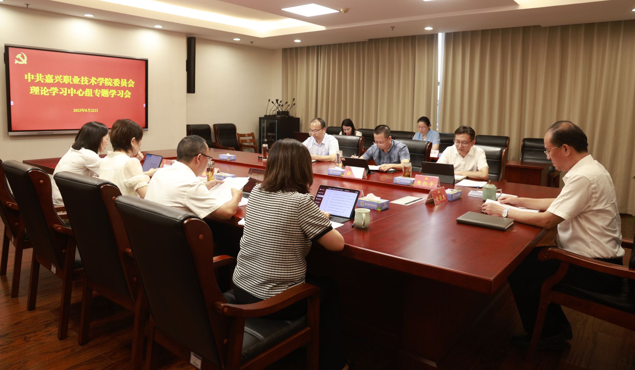 8月22日,嘉職院黨委理論學(xué)習(xí)中心組舉行學(xué)習(xí)貫徹《浙江省推進領(lǐng)導(dǎo)干部能上能下實施細(xì)則》和《浙江省深化落實“三個區(qū)分開來”要求健全容錯糾錯機制激勵干部擔(dān)當(dāng)作為實施辦法》專題學(xué)習(xí)會。黨委書記方俊良主持并講話,黨委委員、副校長陳海忠作中心發(fā)言,黨委委員、副校長王艷作交流發(fā)言。