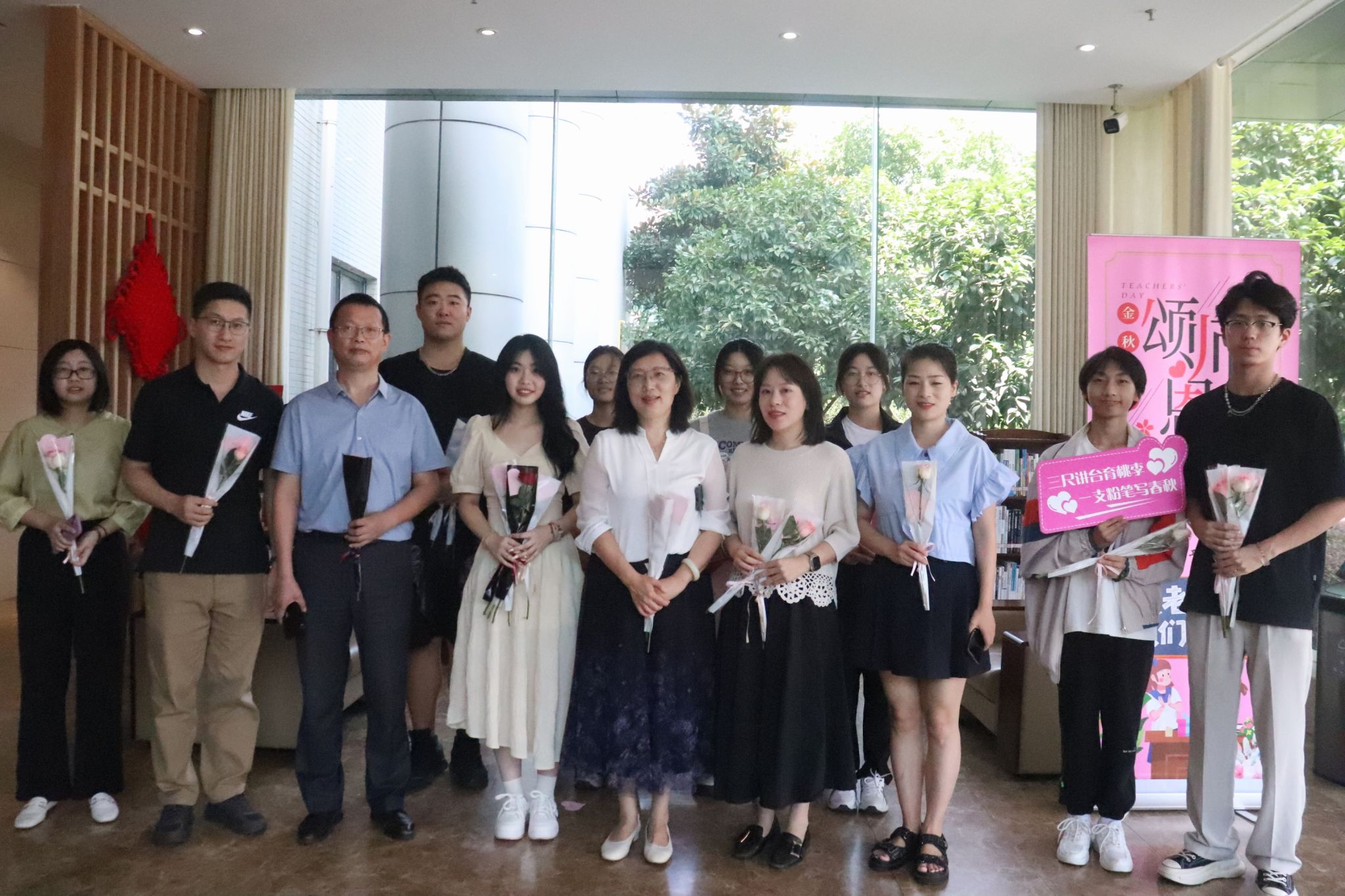 當(dāng)天,學(xué)生代表現(xiàn)場將鮮花獻(xiàn)給老師們,飽含對(duì)老師的感謝和敬愛,深情表達(dá)“老師,您辛苦了!”“老師,節(jié)日快樂!”等問候和祝福,用實(shí)際行動(dòng)弘揚(yáng)尊師重教的傳統(tǒng)美德,營造崇德向善的育人氛圍,讓教師們度過了一個(gè)富有成就感、榮譽(yù)感、幸福感和儀式感的節(jié)日。(圖文來源:校團(tuán)委 校對(duì):陳倚群 審核:王音 主編:張紅宇)