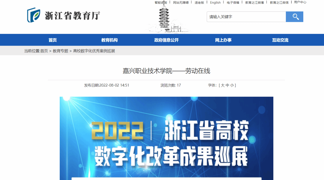 近日,浙江省教育廳公布第三批教育評價改革典型案例名單,嘉職院勞動教育評價改革案例《智慧賦能“三方八目”:新時代高職勞動教育評價改革創(chuàng)新與實(shí)踐》成功入選。