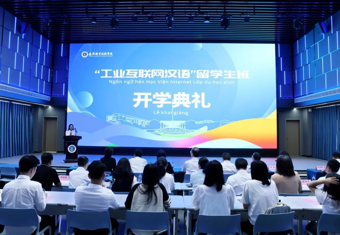 9月23日,嘉職院舉行首屆“工業(yè)互聯(lián)網(wǎng)漢語”班留學(xué)生開學(xué)典禮,歡迎來校學(xué)習(xí)交流的10名越南籍留學(xué)生。黨委書記方俊良致辭,院長張紅出席。