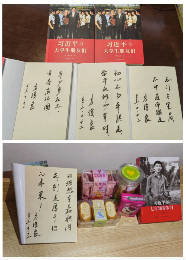 生日會上,學校為“壽星們”精心準備了生日禮物——《習近平的七年知青歲月》《習近平與大學生朋友們》,方俊良親自題詞勉勵學生。