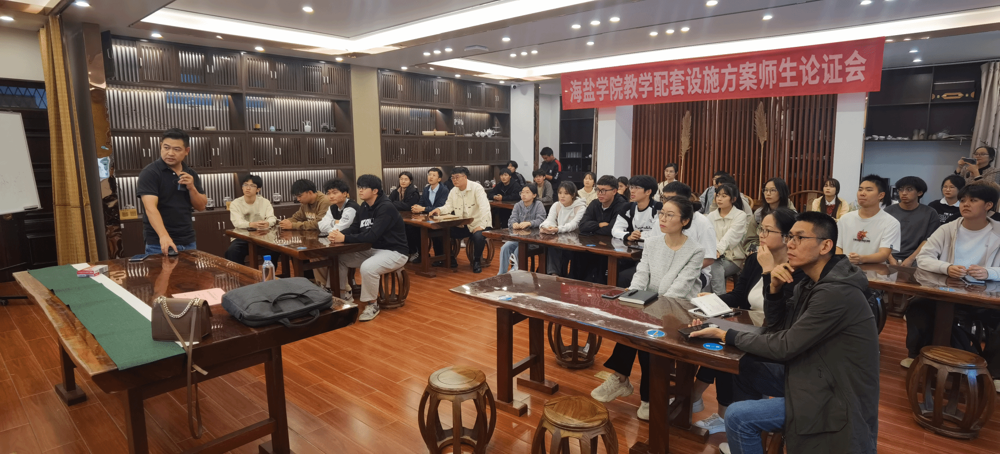海鹽學(xué)院副院長楊曉安分別對(duì)教學(xué)樓、學(xué)生宿舍和教師公寓、辦公室會(huì)議室、圖書館和食堂等六個(gè)區(qū)域的配套設(shè)施方案進(jìn)行了詳細(xì)的介紹,并對(duì)每個(gè)功能區(qū)域的3個(gè)以上備選方案做了分析說明。