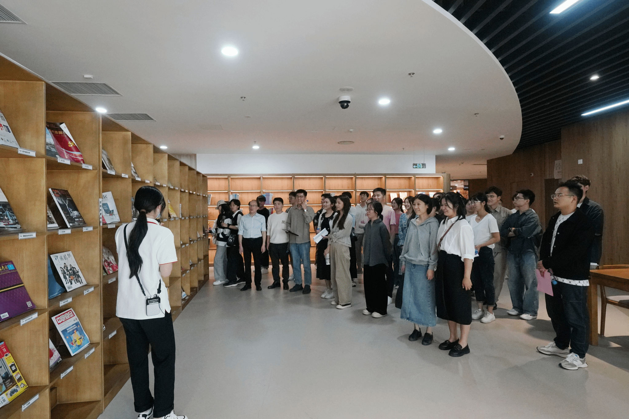 秀洲區(qū)圖書(shū)館是嘉興市首個(gè)清廉圖書(shū)館,每一層空間都設(shè)置了不同的廉潔文化場(chǎng)景。新教師們?cè)趫D書(shū)館講解員的帶領(lǐng)下參觀了紅廉書(shū)架、清廉圖書(shū)視聽(tīng)空間、清廉圖書(shū)苑等空間場(chǎng)景,沉浸式體驗(yàn)廉潔書(shū)香之旅。