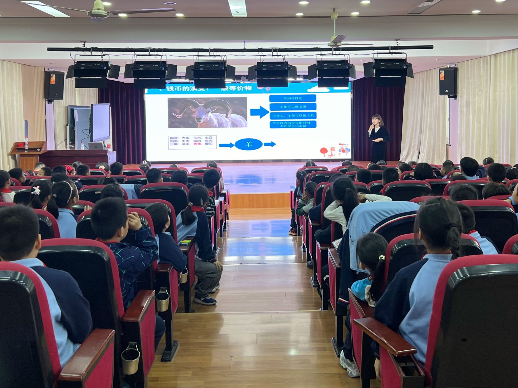 嘉職教師通過生動有趣的小故事為大家講述中國錢幣的演變史,介紹了貝幣、金屬幣、紙幣的演變過程和人民幣符號“¥”的由來,并結(jié)合三年級學(xué)生的金錢觀,幫助大家合理規(guī)劃自己的零花錢、壓歲錢,告訴大家勤儉節(jié)約的重要性。在互動環(huán)節(jié),同學(xué)們紛紛舉手搶答老師提出的問題,現(xiàn)場氛圍十分活躍?!斑@是第一次參加這樣的活動,覺得很好玩。我將來也想成為一名理財師,幫助更多人管理資產(chǎn)。”同學(xué)們紛紛表示,這樣的職業(yè)體驗課堂既新奇又有趣。