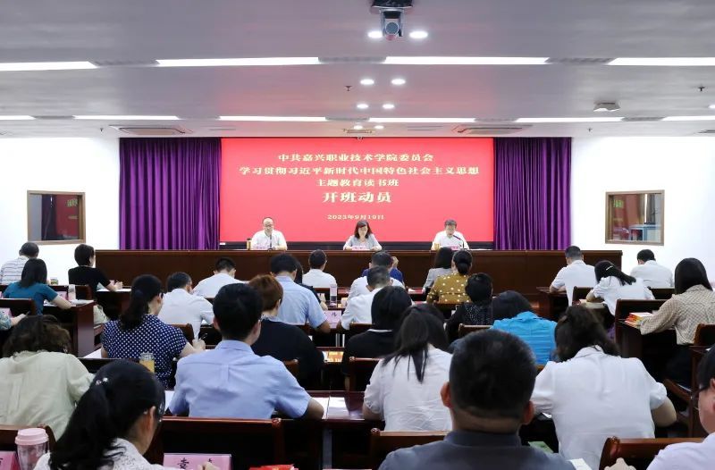 學(xué)校黨委深刻認(rèn)識主題教育的重要意義,緊扣學(xué)習(xí)貫徹習(xí)近平新時代中國特色社會主義思想主題主線,堅持高位推動、精心謀劃部署,推動主題教育工作良好開局。第一時間推動落實,成立主題教育領(lǐng)導(dǎo)小組,緊跟主題教育目標(biāo)任務(wù)和省委、市委工作要求,結(jié)合學(xué)校實際,研究制定《嘉興職業(yè)技術(shù)學(xué)院主題教育實施方案》并認(rèn)真組織實施,為學(xué)校高質(zhì)量開好主題教育提供指導(dǎo)。第一時間部署動員,學(xué)校黨委召開黨委會,專題研究部署落實主題教育相關(guān)工作。9月12日召開全體黨員干部大會,進(jìn)一步傳達(dá)學(xué)習(xí)主題教育會議精神,對高標(biāo)準(zhǔn)開展學(xué)校主題教育動員部署。9月13日,面向各部門、各二級黨組織、基層黨支部召開主題教育培訓(xùn)會;9月14日召開調(diào)查研究部署會,明確工作任務(wù)要求、細(xì)化舉措,確保主題教育快啟動、快開展。第一時間深入推進(jìn),以1個學(xué)??傮w方案、8個二級黨組織工作方案、36個黨支部學(xué)習(xí)計劃的方式,以上率下推動主題教育“一桿到底”。