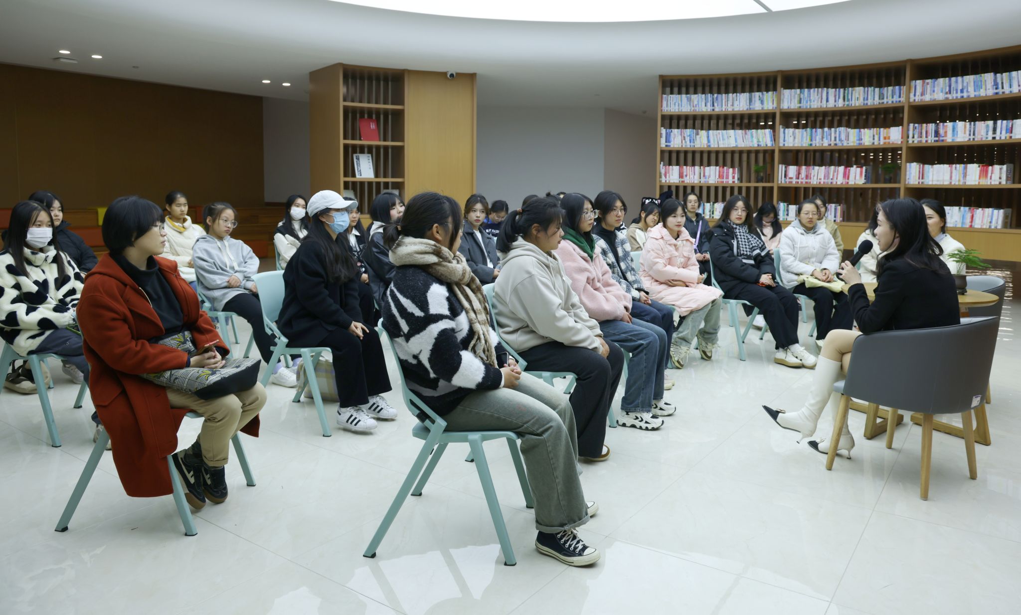 互動(dòng)交流環(huán)節(jié),同學(xué)們熱情高漲,圍繞“創(chuàng)業(yè)過(guò)程如何解決跨專(zhuān)業(yè)問(wèn)題”“大學(xué)期間可以從哪些渠道提升創(chuàng)業(yè)能力”“如何找準(zhǔn)自己的創(chuàng)業(yè)就業(yè)方向”等方面開(kāi)展了現(xiàn)場(chǎng)交流,孫含針對(duì)同學(xué)們的困惑,結(jié)合自身經(jīng)歷對(duì)問(wèn)題一一進(jìn)行回答,從專(zhuān)業(yè)興趣、創(chuàng)業(yè)情懷、資源整合等方面,上演了一場(chǎng)思想的碰撞與交流,給予女大學(xué)生激勵(lì)與啟發(fā)。