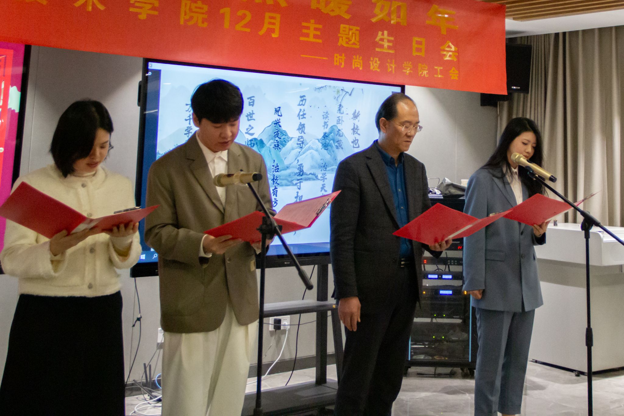 12月21日下午,校工會(huì)攜手時(shí)尚設(shè)計(jì)學(xué)院工會(huì)在學(xué)校智慧酒店實(shí)訓(xùn)中心開(kāi)展“時(shí)尚嘉韻 煦暖如年”集體生日會(huì)活動(dòng)。黨委書(shū)記方俊良、院長(zhǎng)張紅等校領(lǐng)導(dǎo)出席,12月生日的教職工參加活動(dòng)。