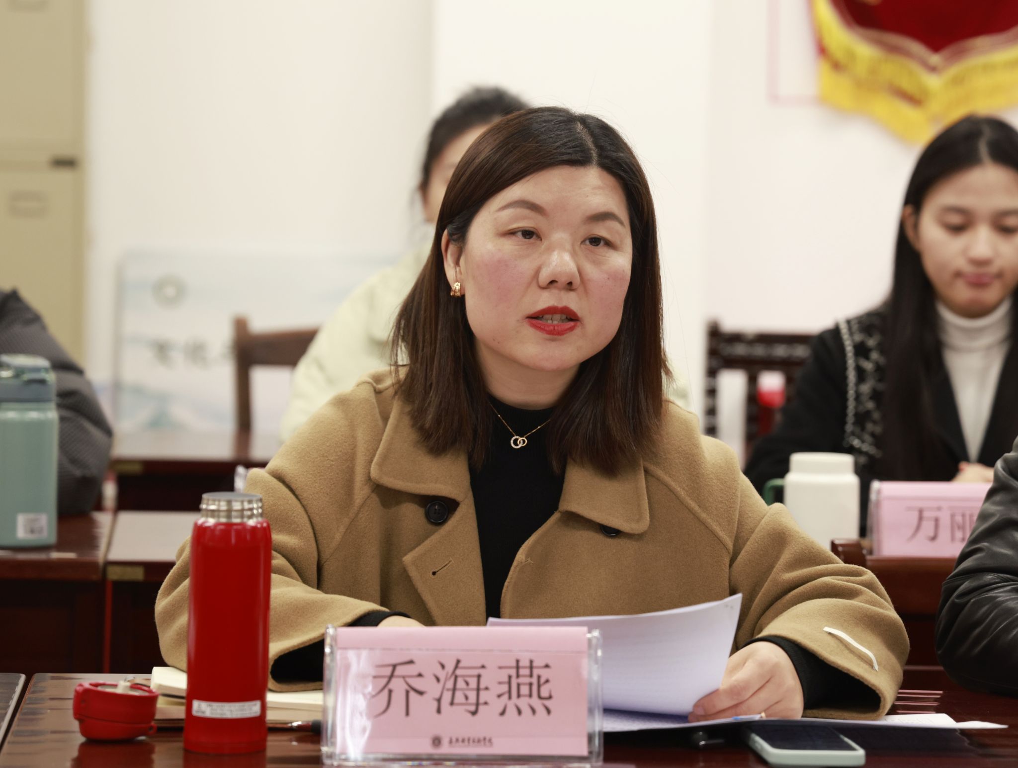 座談會上,文化與旅游學(xué)院院長喬海燕匯報(bào)學(xué)院各項(xiàng)工作開展情況。各位新教師依次分享入校后的收獲與體會。
