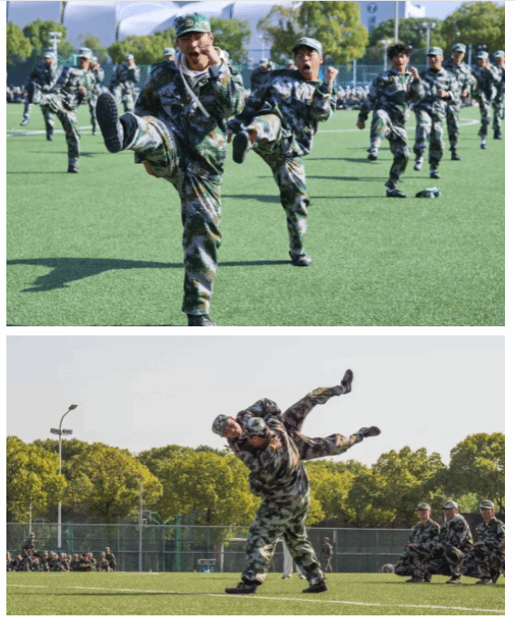 表演方陣氣勢磅礴、井然有序。擒敵拳打得虎虎生風(fēng)、匕首操表演霸氣十足,現(xiàn)場不時響起如雷般掌聲。