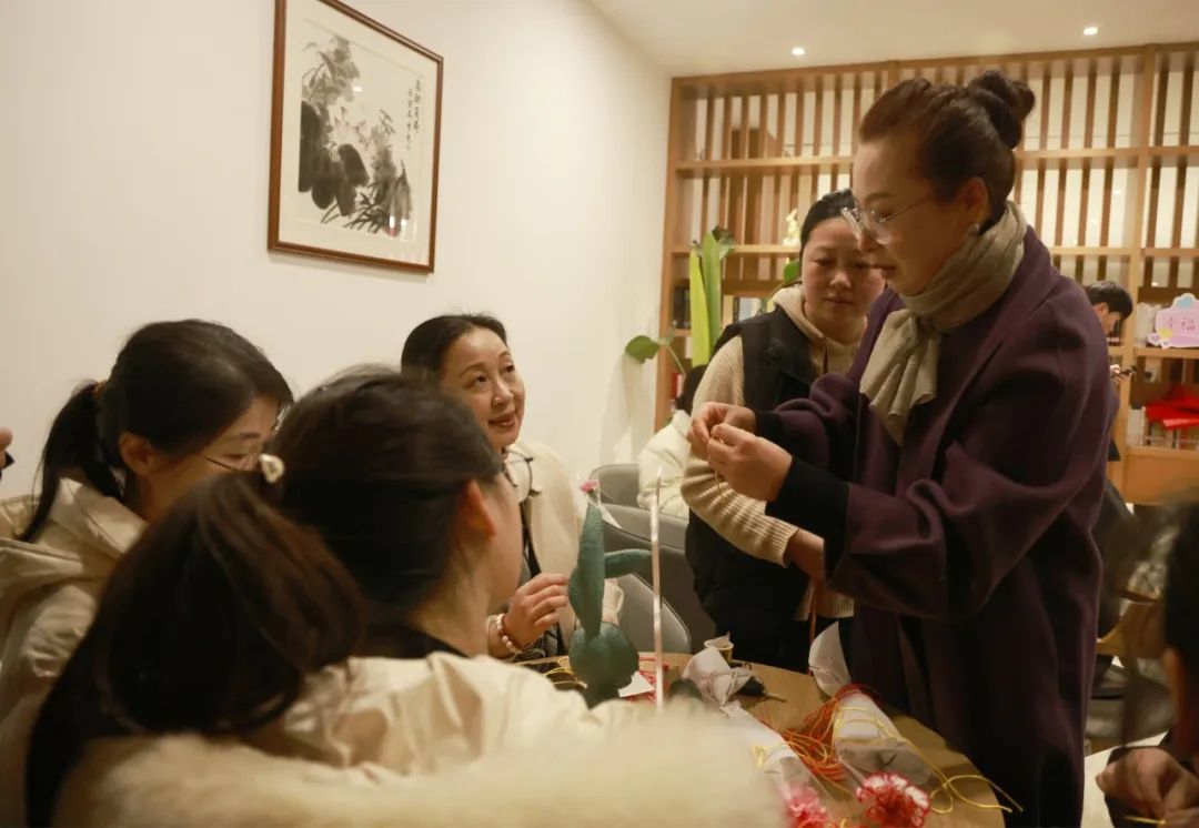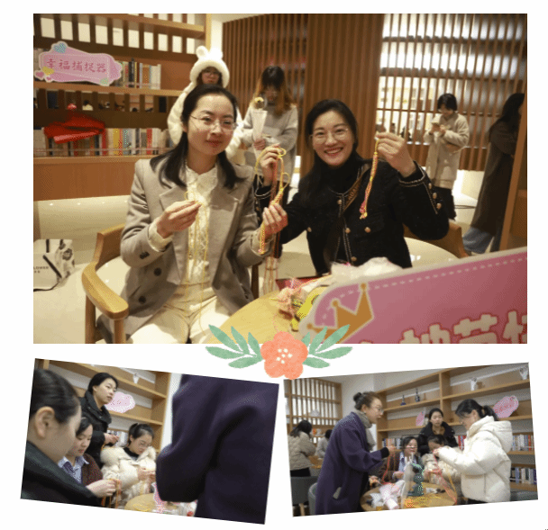 學校三八節(jié)活動不僅受到了女教職工們的追捧,還吸引了嘉興市公安局出入境管理局婦女小組的參與。在手工編織活動區(qū)域,她們一邊聆聽指導老師的講解,一邊聚精會神緊跟老師節(jié)奏,一步一步動手學習,現(xiàn)場氛圍十分融洽。