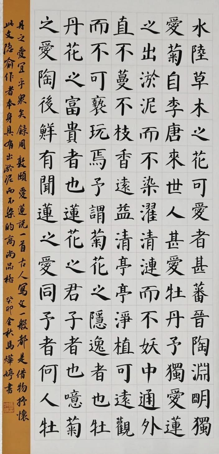 靜觀《愛蓮說》,仿佛一陣沁人心扉、浩然正氣的荷香隨清風(fēng)撲面而來,給人一份圣潔高雅、不染纖塵的熏陶。當(dāng)代青年應(yīng)以蓮花為榜樣,以清廉為準(zhǔn)則,大力弘揚(yáng)清廉守正、擔(dān)當(dāng)實(shí)干之風(fēng)。