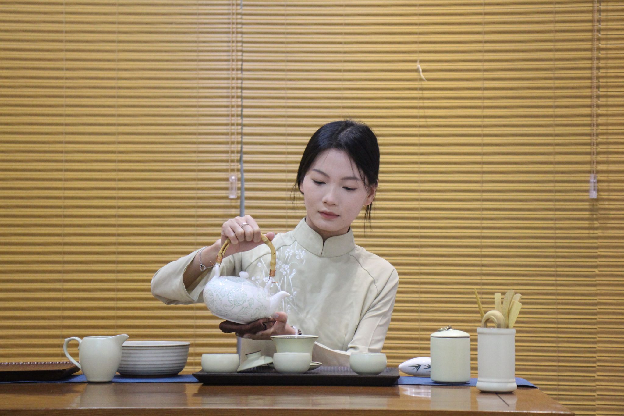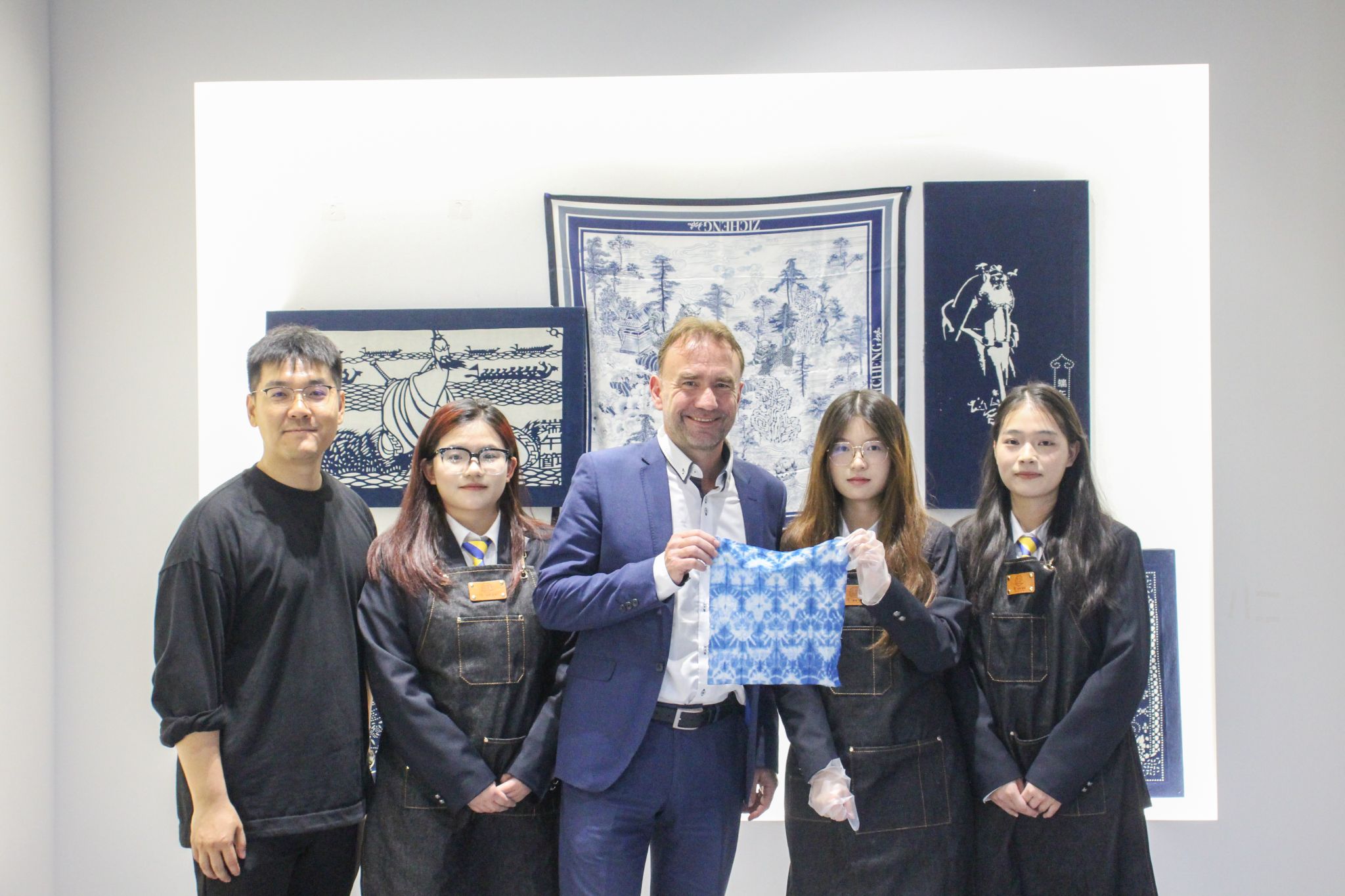 Jan Hán(簡漢)一行體驗文化與旅游學(xué)院師生精心準(zhǔn)備的點茶、茶藝表演和藍(lán)印花布制作等活動,感受中華優(yōu)秀傳統(tǒng)文化的魅力。
