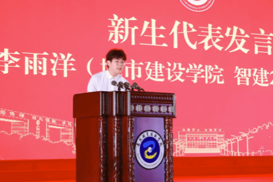城市建設(shè)學(xué)院智建241班李雨洋代表全體新生發(fā)言。他決心以“有理想”的“志氣”扛起使命,以“敢擔(dān)當(dāng)”的“骨氣”錨定目標(biāo),以“能吃苦”的“底氣”篤行不怠,在“厚德,真知,強(qiáng)能”校訓(xùn)的指引下,爭當(dāng)逐夢新時代的能工巧匠、“大國工匠”。