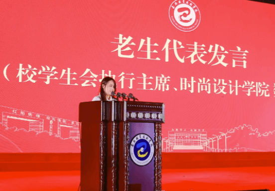 時尚設(shè)計學(xué)院數(shù)媒222班邱弼偲代表老生發(fā)言。她回顧了自己來校求學(xué)成長的心路歷程,從初入校園時的青澀懵懂,到如今在專業(yè)領(lǐng)域內(nèi)的收獲與成績,她在與學(xué)校共同奮進(jìn)中,錘煉了強(qiáng)國有我的青春擔(dān)當(dāng)。她鼓勵學(xué)弟學(xué)妹們滿懷信心、堅定信念,腳踏實(shí)地、不懈奮斗,綻放屬于自己的光芒。