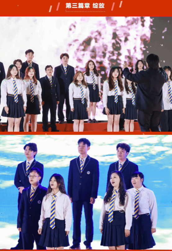 當(dāng)《紅旗頌》歌聲響起,一幅壯麗的畫卷在觀眾眼前展開。激昂的音符,如同燃燒的火焰;悠揚(yáng)的歌聲,如同沖鋒的號角,師生們在這壯麗的音樂中,感受祖國的偉大,激發(fā)為祖國的明天而努力拼搏的決心。
