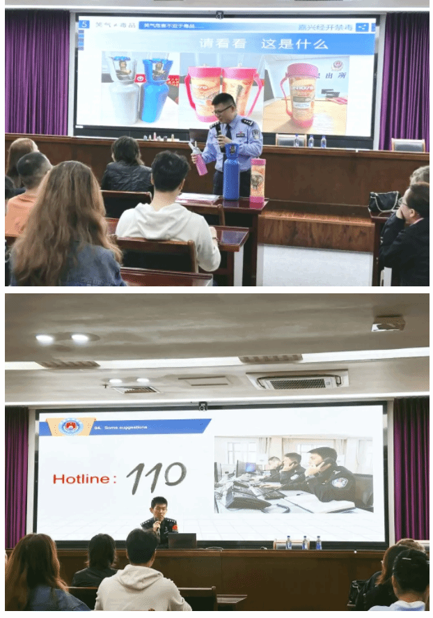 嘉興市經(jīng)開區(qū)禁毒部門聯(lián)合嘉興出入境邊防檢查站走進(jìn)嘉職院,為留學(xué)生新生開展毒品預(yù)防和反詐教育宣傳講座。講座上,嘉興出入境邊防檢查站警官列舉了近年來在留學(xué)生人群中高發(fā)的電信詐騙案例,提醒來華留學(xué)生們要提高警惕,謹(jǐn)防詐騙。“嘉警”平安星宣講師孟建林介紹了毒品的種類、危害和防毒注意事項(xiàng),叮囑留學(xué)生遵守中國法律法規(guī),提高毒品辨別和防范能力。