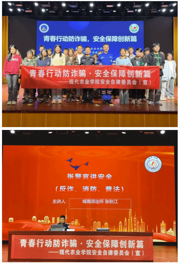 現(xiàn)代農(nóng)業(yè)學(xué)院安全自律委員會(huì)特邀城南派出所民警為學(xué)生帶來專題教育講座。民警圍繞電信詐騙的概念、常見形式、防范對(duì)策以及補(bǔ)救措施四個(gè)方面,通過列舉身邊的真實(shí)案例、情景模擬、互動(dòng)問答等方式,生動(dòng)形象地展示了電信詐騙的危害性和反詐騙工作的重要性,極大地激發(fā)了學(xué)生們的參與熱情和思考深度。