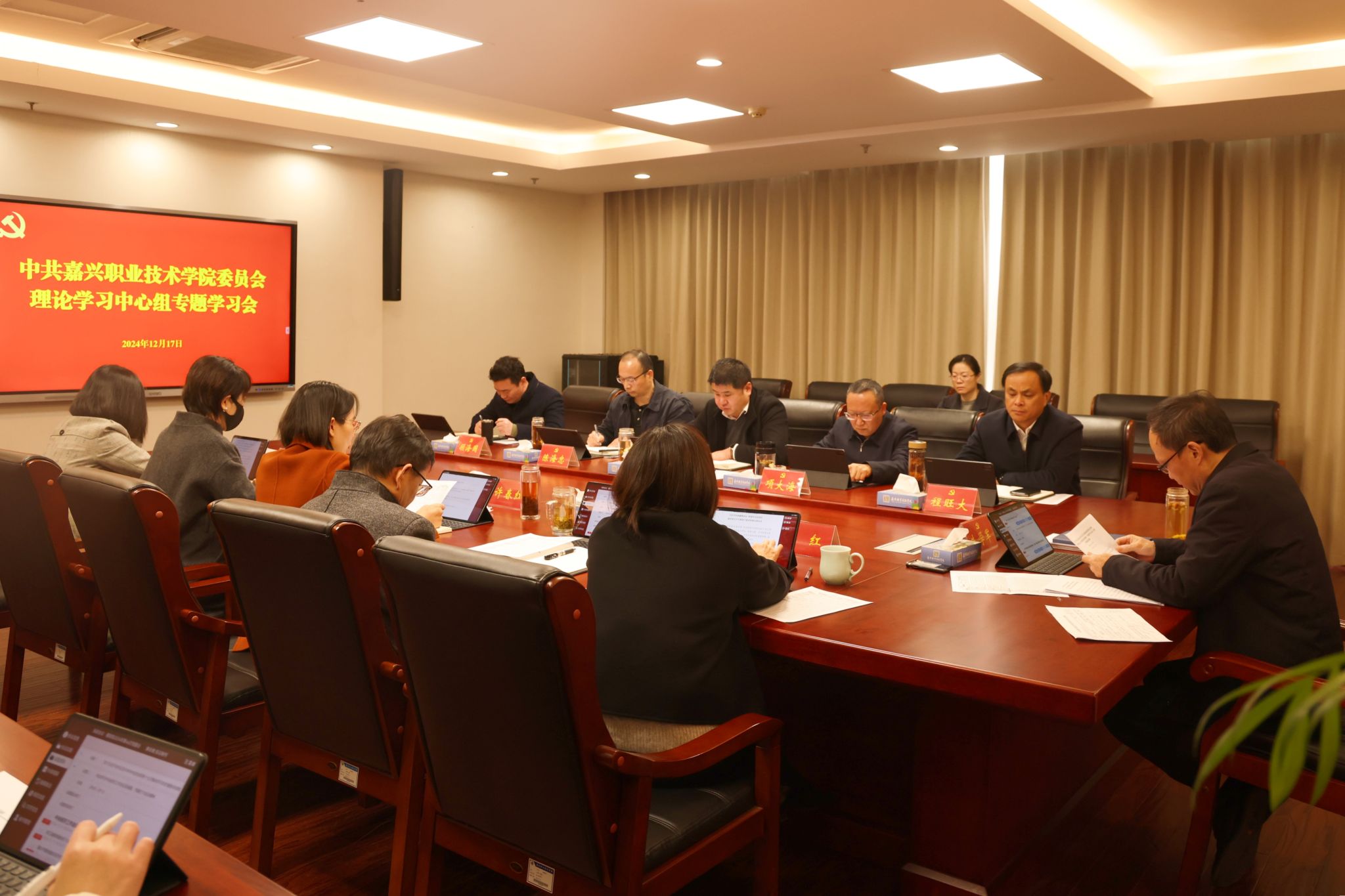 12月17日,嘉職院黨委理論學(xué)習(xí)中心組召開專題學(xué)習(xí)會,學(xué)習(xí)習(xí)近平總書記在全國民族團結(jié)進步表彰大會上的重要講話精神。黨委書記朱學(xué)軍主持并講話,黨委委員、副校長陳海忠,黨委委員、組織部部長顧海國作交流發(fā)言。