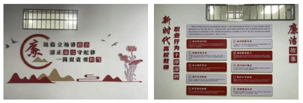 認真落實上級關于清廉單元建設部署要求,以清廉制度為保障、清廉師德為基礎、清廉文化為支撐,全系統(tǒng)全領域全過程推進清廉單元建設,圍繞清廉標語、新時代高校教師職業(yè)行為十項準則、廉潔故事、廉潔作品等內(nèi)容建設清廉單元,努力營造風清氣正學院生態(tài)。