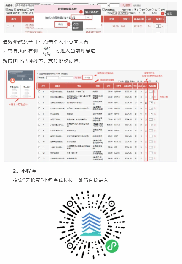 微信小程序同步PC端主要功能,只需輕動(dòng)手指,就能夠?qū)崿F(xiàn)快捷采書(shū),除采選所需必要信息,還能夠?qū)崟r(shí)查看訂購(gòu)排行以及本館訂購(gòu)圖書(shū)種類。