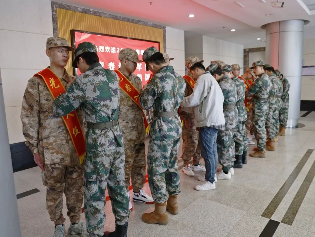 學(xué)生工作部(安全保衛(wèi)部、人武部)相關(guān)負責人、相關(guān)二級學(xué)院負責人、輔導(dǎo)員代表、入伍新兵家長、退役大學(xué)生代表等參加歡送儀式。
