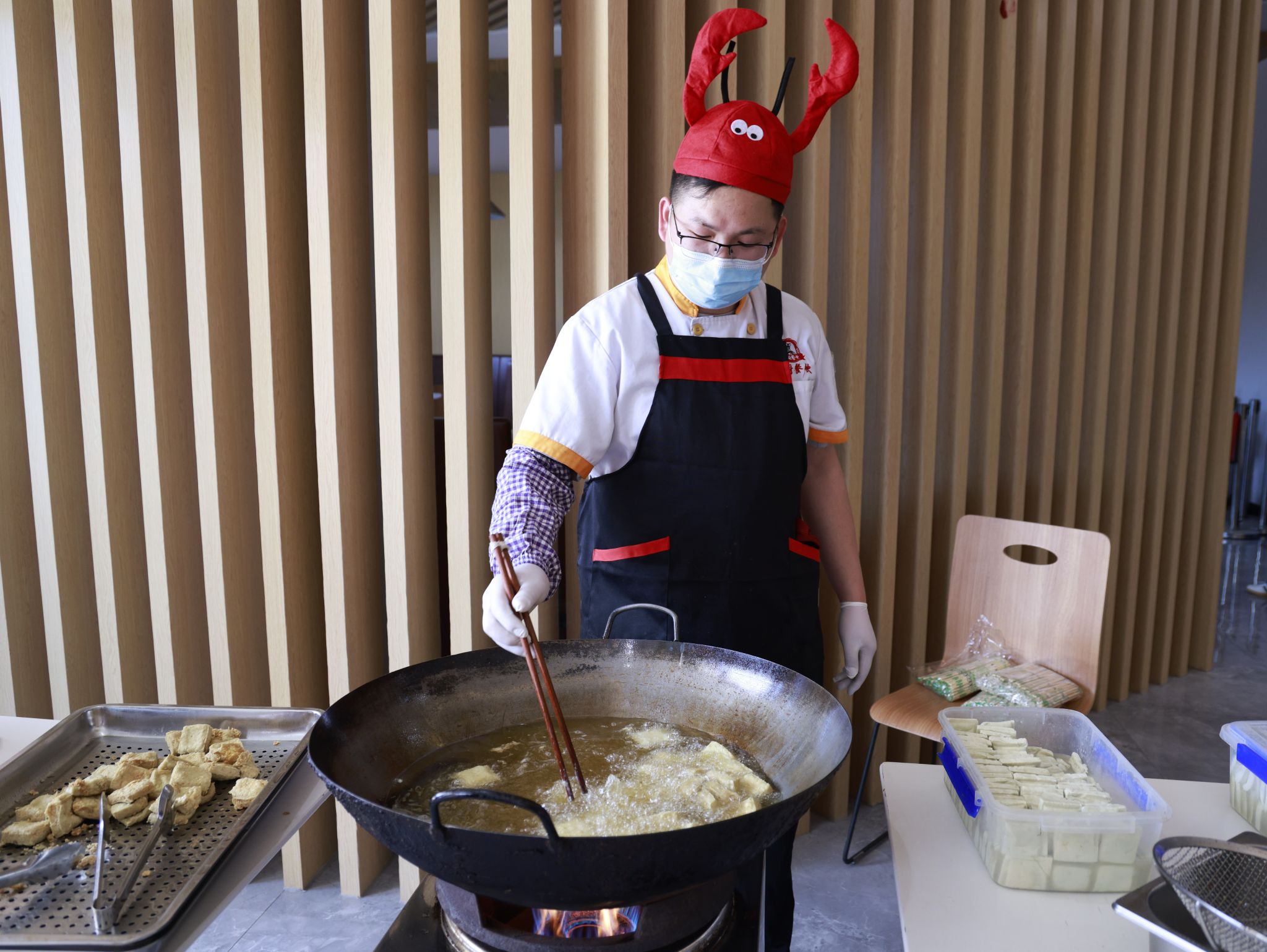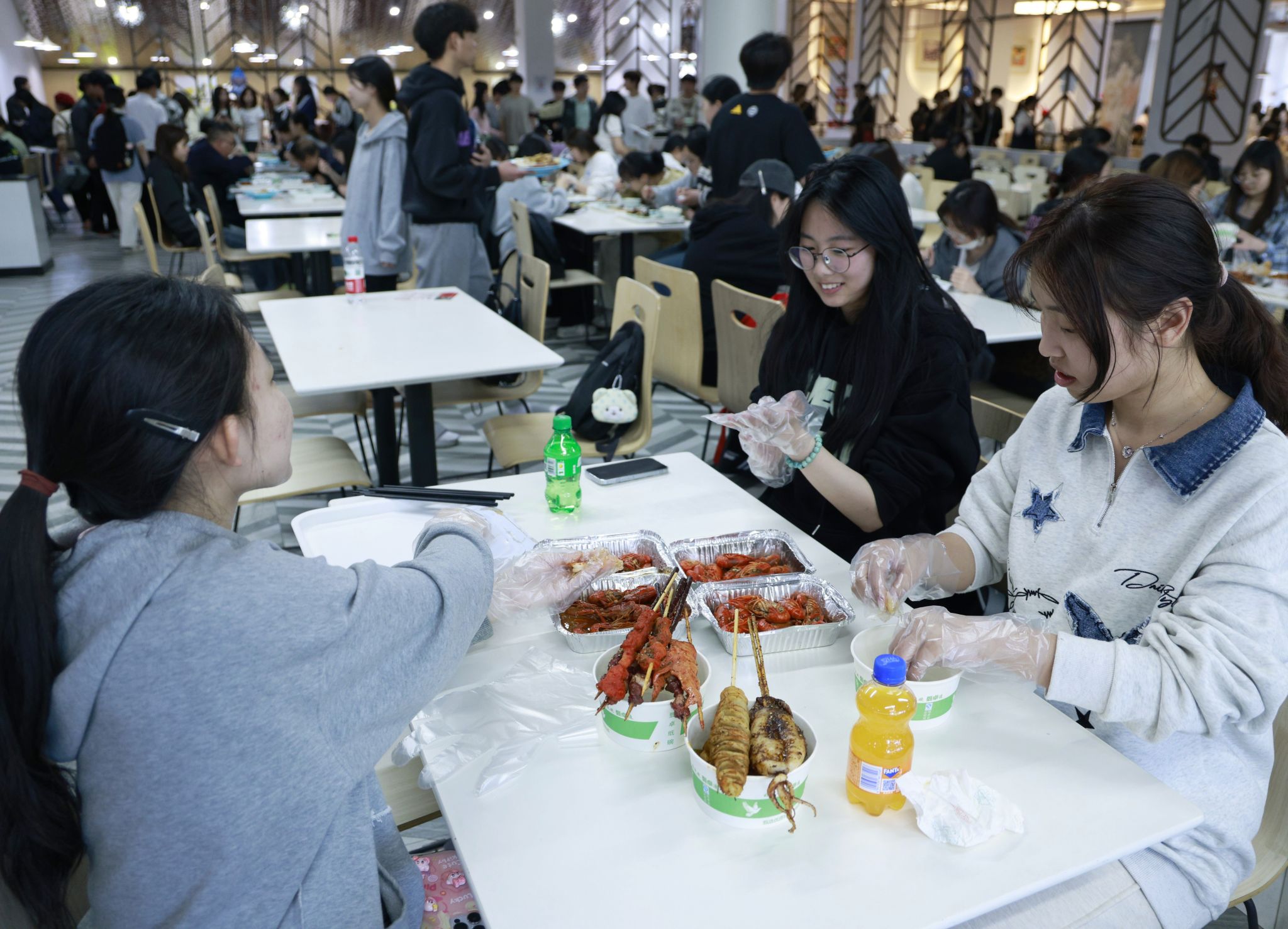 明德餐廳內,一盆盆熱氣騰騰、香氣四溢的小龍蝦正被端上餐柜。蒜蓉小龍蝦蒜香濃郁,細膩的蒜蓉包裹著鮮嫩的蝦肉,入口鮮美、回味無窮;十三香小龍蝦味道醇厚,多種香料的完美融合,賦予了小龍蝦獨特而豐富的口感;椒鹽味小龍蝦蝦殼酥脆、肉質細嫩。現(xiàn)場還有超多新鮮制作的生蠔、三元路臭豆腐、特色烤魚等十余種地方特色美食,師生們沉浸在美食帶來的愉悅和享受中,伸出大拇指連連夸贊:“味道好極了!”