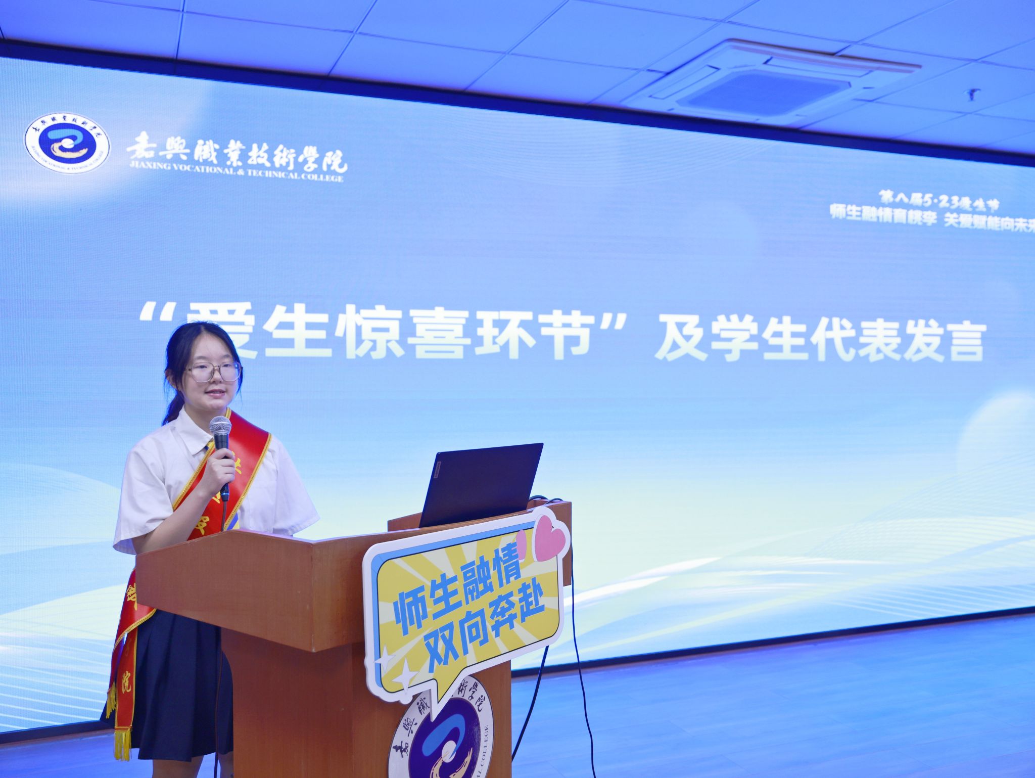 據(jù)悉,嘉職院自2018年設立“愛生節(jié)”,至今已是第八屆,8年來,學校舉辦了不同主題的、貼近學生、融入學生的愛生節(jié)系列活動,把“愛”的理念貫穿于“三全育人”、“五育并舉”全過程。近年來,學校愛生項目連續(xù)落地,新建、改造學生公寓;提高勤工助學資助標準,不斷創(chuàng)新推出勤工助學崗位,豐富拓展各類幫困補助。一系列學生喜聞樂見的活動的舉辦,在校園里營造了愛生如子的良好氛圍。