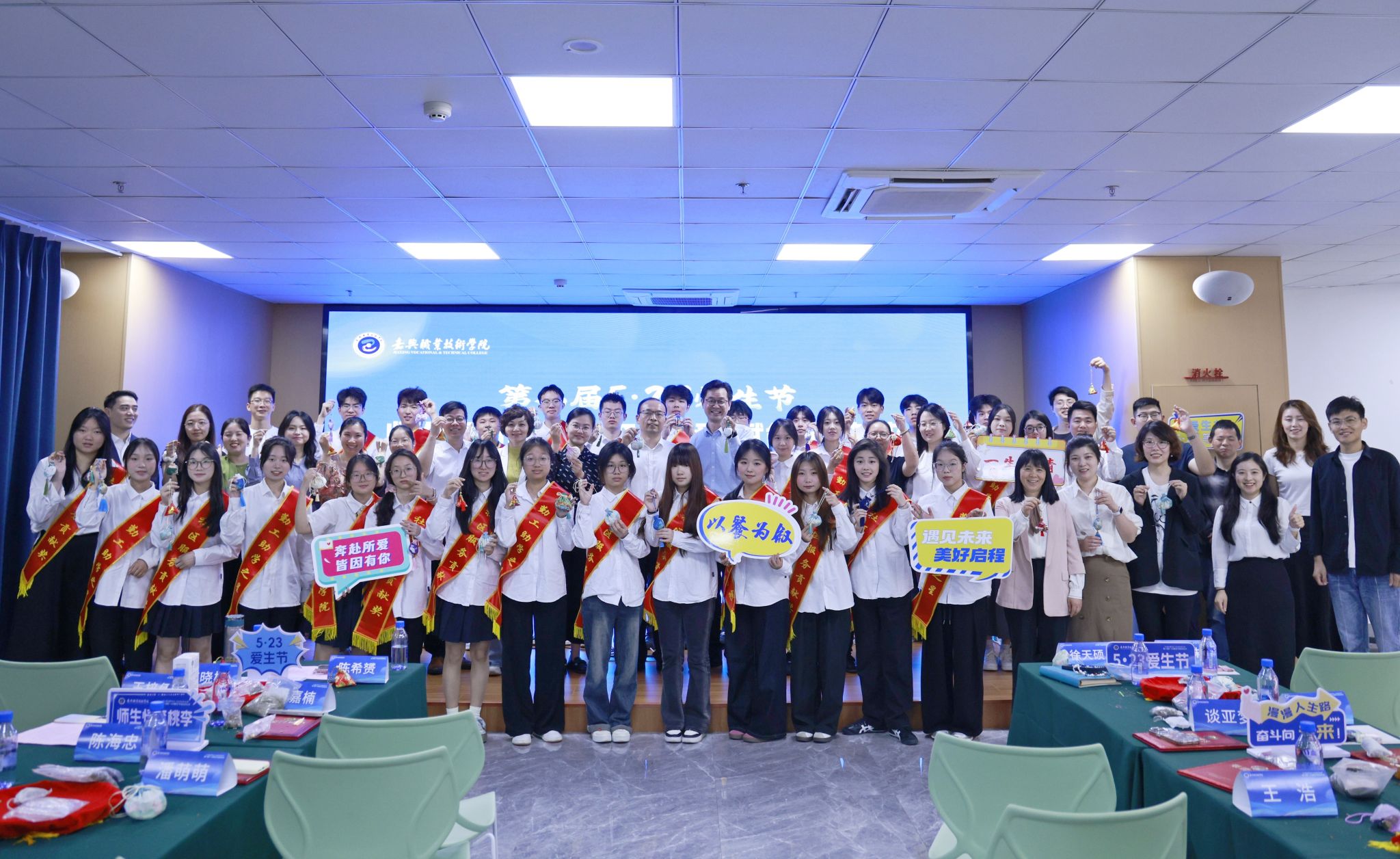 五月的校園,綠草如茵,愛意涌動。5月23日上午,嘉職院第八屆“5·23”愛生節(jié)系列活動在明德書院學生發(fā)展中心啟動,校黨委委員、副校長陳海忠、相關職能部門二級學院負責人,輔導員、班主任、任課老師代表和學生代表參加活動。陳海忠為10名勤工助學之星、20名社區(qū)服務貢獻獎獲獎學生頒獎。