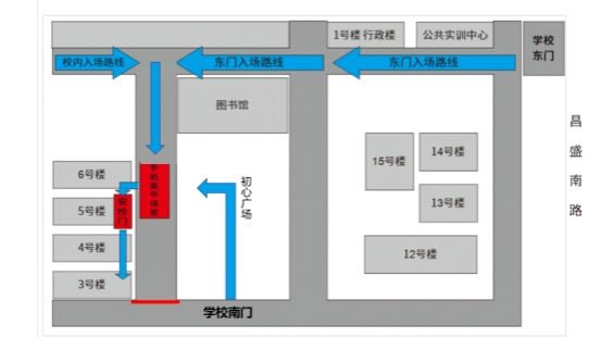 1.考試入場(chǎng)流程:根據(jù)浙江省教育考試院要求,嚴(yán)禁考生攜帶手機(jī)、藍(lán)牙耳機(jī)、智能手表(手環(huán))等具有發(fā)送或接收信息功能的設(shè)備參加考試,如帶入考點(diǎn)須集中存放,考生需兩次安檢。考生按照制定線路(詳見(jiàn)圖1)到達(dá)手機(jī)集中保管區(qū)。從南門(mén)進(jìn)入的考生,必須從手機(jī)集中保管處經(jīng)過(guò),再通過(guò)安檢門(mén)。工作人員在準(zhǔn)考證上蓋“已上交”章,隨后經(jīng)封閉通道在5號(hào)樓大臺(tái)階下過(guò)安檢門(mén)進(jìn)行一次安檢,進(jìn)入3號(hào)樓考場(chǎng)內(nèi)再接受二次安檢。