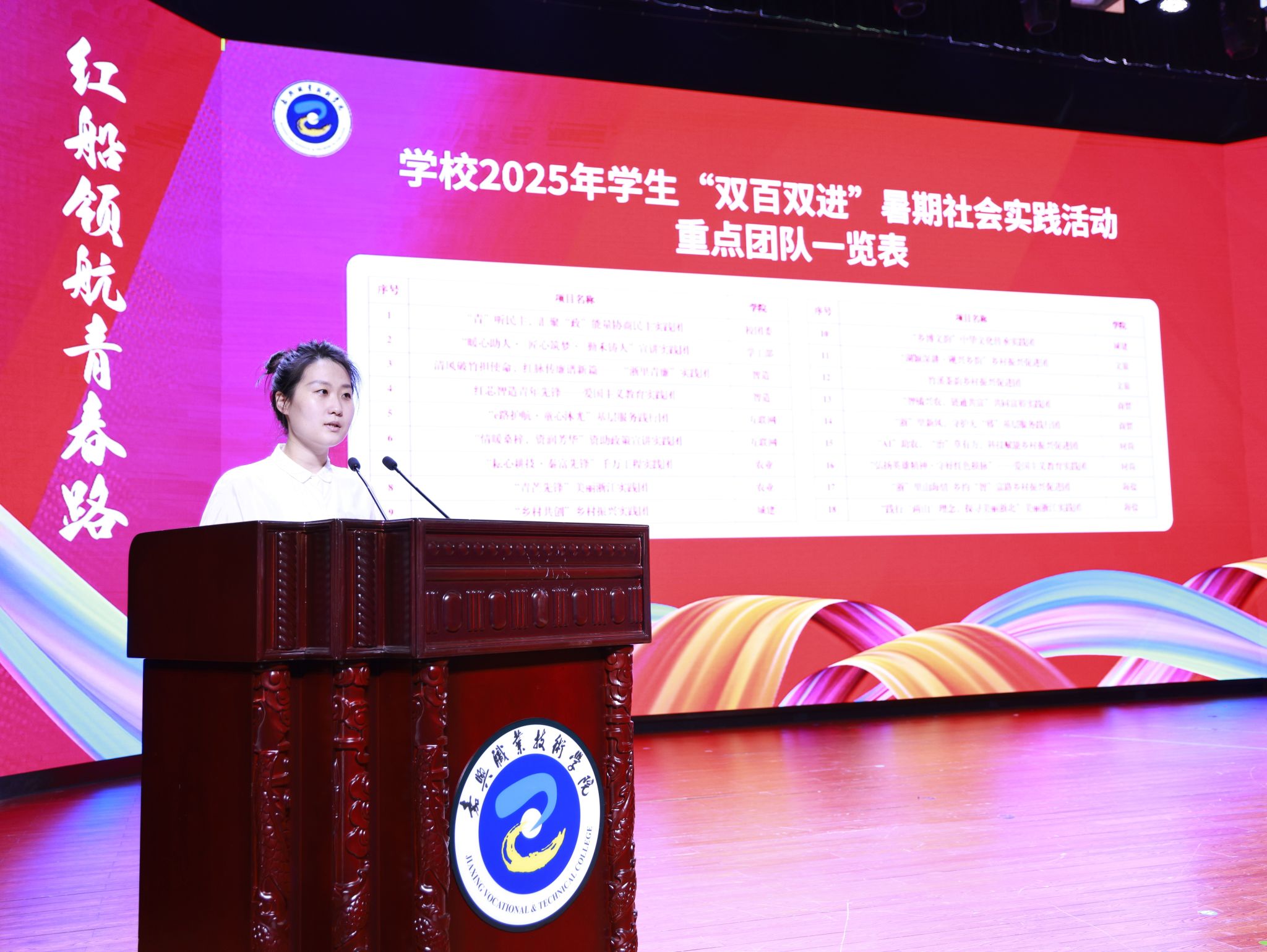 6月12日,嘉職院舉行2025年大學生“雙百雙進”暑期社會實踐活動出征儀式,為即將奔赴四面八方、投入火熱實踐的青春力量壯行。黨委委員、副校長陳海忠出席會議,講話,并為出征團隊授旗。