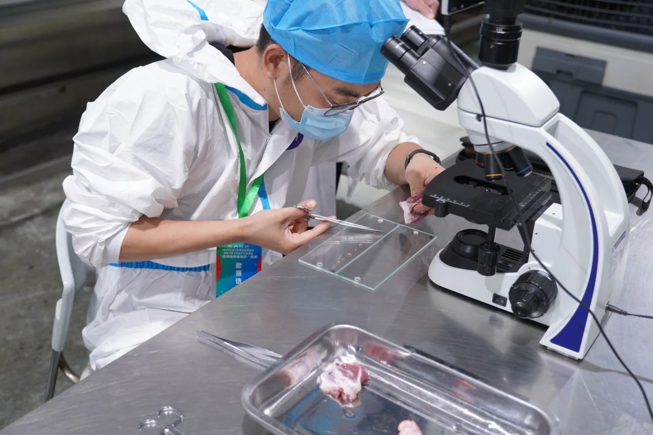 比賽中,身著防護(hù)服的選手們動作嫻熟,從頭蹄、咬肌檢查到紅臟、白臟、胴體檢驗(yàn)?zāi)酥列x采樣,整套屠宰檢測流程行云流水,一氣呵成。裁判員切實(shí)履行職責(zé),以高度責(zé)任感、嚴(yán)謹(jǐn)態(tài)度和專業(yè)精神,依據(jù)競賽標(biāo)準(zhǔn)及細(xì)則進(jìn)行客觀公正評判,維護(hù)賽事公信力,確保競賽成為檢驗(yàn)技能、選拔人才的“試金石”。
