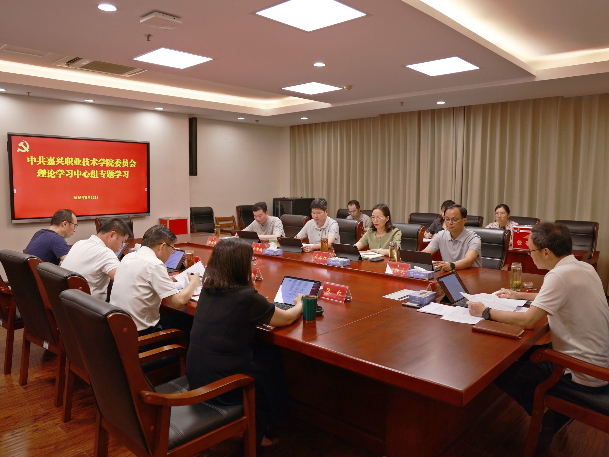 8月12日,嘉職院黨委理論學(xué)習(xí)中心組召開專題學(xué)習(xí)會(huì),專題學(xué)習(xí)習(xí)近平總書記關(guān)于統(tǒng)計(jì)工作的重要講話和重要指示批示精神。黨委書記朱學(xué)軍主持并講話,黨委副書記、副院長程旺大,黨委委員、副院長金智鵬作交流發(fā)言。