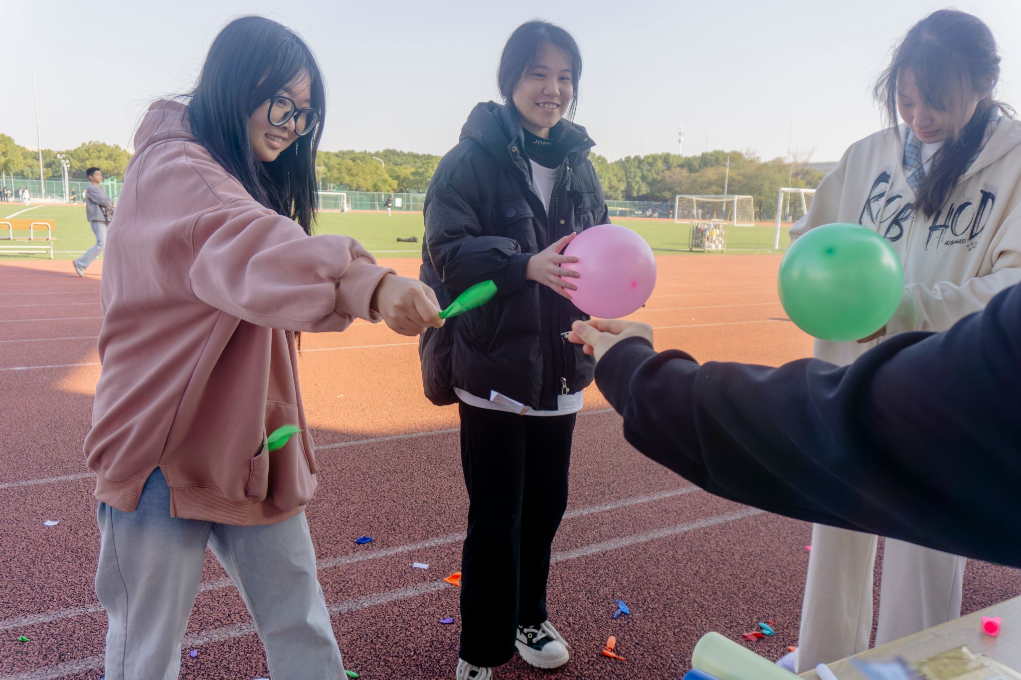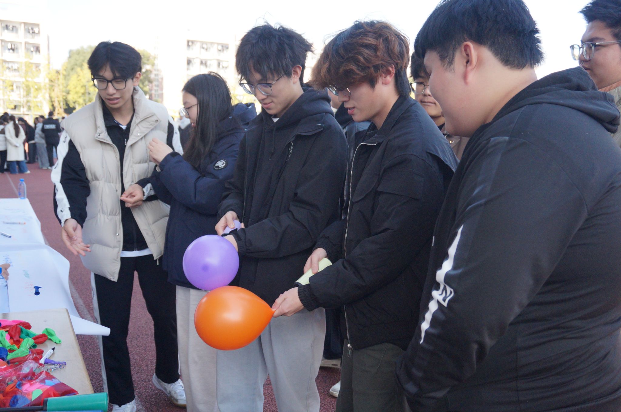 “慢一點(diǎn)!往左挪挪,球要掉啦!”“珠” 行萬里活動(dòng)區(qū)內(nèi),寢室組隊(duì)的同學(xué)們正默契配合,大家手持 U 型槽,小心翼翼地接力傳遞乒乓球,10 米長的賽道上,小小白球在槽中滾動(dòng)。偶爾球落地,大家笑著回到起點(diǎn)重新開始,沒有抱怨只有互相打氣;活動(dòng)間隙的 “室友小問答” 環(huán)節(jié)更添溫馨,“他超愛喝奶茶”“上次我生病是她陪我去醫(yī)院”……一句句真誠的分享,讓室友間的了解更深一層。沒有激烈的競爭,只有協(xié)作的快樂,這份同心協(xié)力的溫暖,像陽光一樣灑滿校園的每個(gè)角落。