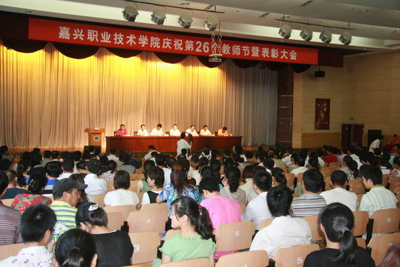 9月9日下午,全體教職員工齊聚二號樓報告廳,共慶自己的節(jié)日。嘉興市副市長柴永強出席了表彰大會。