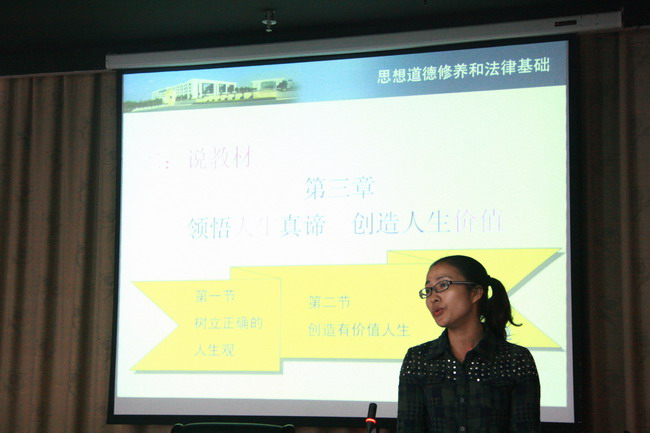 參賽的各位青年教師運(yùn)用多媒體說課,內(nèi)容豐富,語言生動,思路清晰。其中劉莉老師的情景教學(xué)法、活動教學(xué)法;張興梅老師的情景模擬、實(shí)戰(zhàn)演練法;吳湘蓮老師的項(xiàng)目教學(xué)法、模塊教學(xué)法等,都給在場的評委留下了深刻的印象。經(jīng)學(xué)院競賽評議小組評議,社科部體、軍藝部的劉莉老師榮獲得了本次競賽的一等獎,信息與管理分院的張興梅老師、機(jī)電與汽車分院的吳湘蓮老師獲得二等獎,生物與環(huán)境分院的黃超群老師、外語與貿(mào)易分院的陳碧君老師、紡織與藝術(shù)設(shè)計(jì)分院的高慧英老師獲得三等獎。