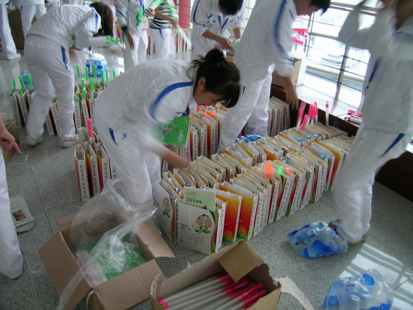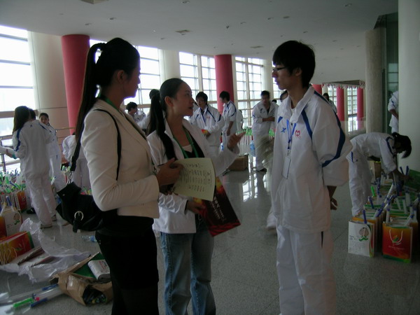 閉幕式當天上午,志愿者們緊張地進行禮品裝袋