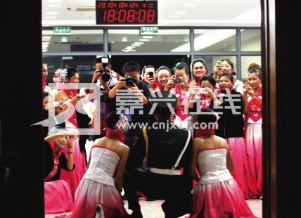 候場的嘉職院學生演員們成為媒體關(guān)注的焦點