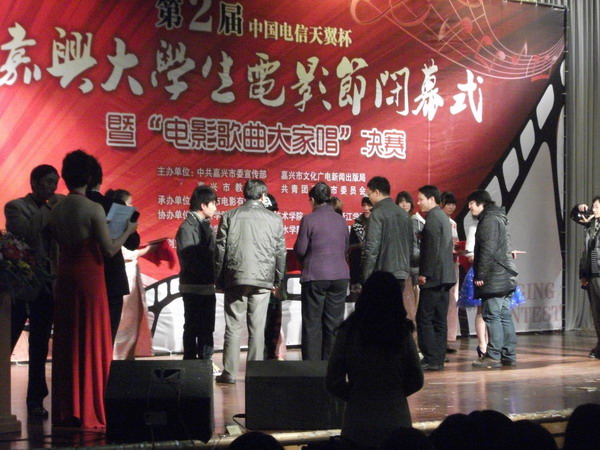 本屆電影節(jié)由市委宣傳部、市文化局、市教育局和共青團嘉興市委員會等單位聯(lián)合主辦,嘉興市電影有限公司承辦,嘉興學院、嘉興職業(yè)技術(shù)學院等5所嘉興市區(qū)的高校以及嘉興電大、嘉興市影視家協(xié)會等單位協(xié)辦。嘉興市文化廣電新聞出版局副局長張憲義,嘉興市教育局副局長朱軍一以及我院副院長都建明等多位領(lǐng)導(dǎo)出席了本次晚會。來自各高校的學生代表和嘉職院的同學們一起觀看了精彩的比賽并獻上了熱烈的掌聲。
