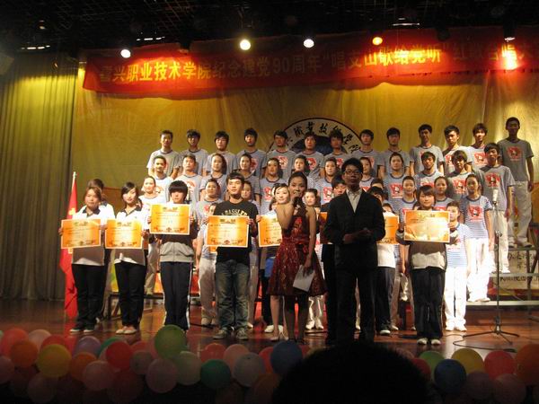 為活躍學(xué)生文化生活,喜迎建黨90周年,學(xué)院團(tuán)委先期組織了“紅歌大家唱”的個(gè)人賽,此次組團(tuán)比賽每個(gè)合唱團(tuán)多則50余人,少則由30多名學(xué)生組成。其中,由學(xué)院團(tuán)學(xué)干部組成的紅星合唱團(tuán),在茹宇飛老師出色的指揮下,以一曲《唱支山歌給黨聽》的主題歌榮獲本次比賽特別獎(jiǎng)。由機(jī)電與汽車分院學(xué)生組成的男兒本色合唱團(tuán)以一首鏗鏘有力的《咱們工人有力量》獲得一等獎(jiǎng)。其他曲目分獲二、三等獎(jiǎng)及優(yōu)秀獎(jiǎng)。(文/趙遠(yuǎn)遠(yuǎn) 攝/朱衛(wèi)國 陸佳紅)