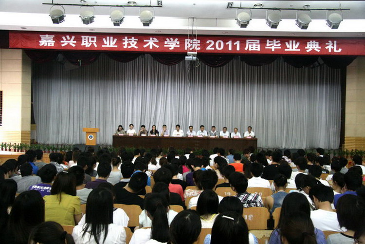 6月9日上午,我院在二號(hào)樓報(bào)告廳隆重舉行嘉職院2011屆畢業(yè)生畢業(yè)典禮。出席典禮的有學(xué)院領(lǐng)導(dǎo)周奇跡、單勝道、都建明及各分院、部(處)負(fù)責(zé)人。畢業(yè)典禮由教務(wù)處副處長(zhǎng)巢新冬主持。2011屆全體畢業(yè)生參加典禮。