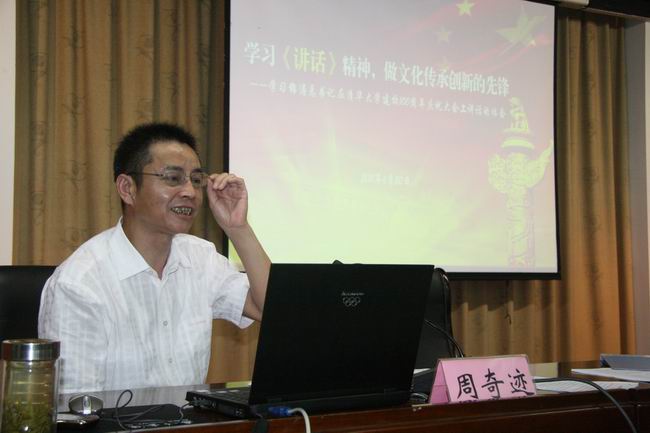 周奇跡書記強(qiáng)調(diào),要深刻認(rèn)識(shí)《講話》的重要意義?!吨v話》是指導(dǎo)新時(shí)期我國(guó)高等教育改革發(fā)展的綱領(lǐng)性文件,《講話》豐富了高等教育科學(xué)發(fā)展的內(nèi)涵,豐富了世界高等教育的思想;要充分認(rèn)識(shí)大學(xué)的第四大功能——文化傳承與創(chuàng)新,把握大學(xué)文化傳承創(chuàng)新的內(nèi)涵;有所作為,扎實(shí)做好各項(xiàng)工作,要把握正確的政治方向和價(jià)值導(dǎo)向,大力弘揚(yáng)中國(guó)優(yōu)秀傳統(tǒng)文化,合理吸收借鑒外來文化,處理好文化傳承、文化創(chuàng)新和文化引領(lǐng)的關(guān)系,高度重視人文社會(huì)科學(xué)在文化傳承創(chuàng)新中的獨(dú)特而重要作用。