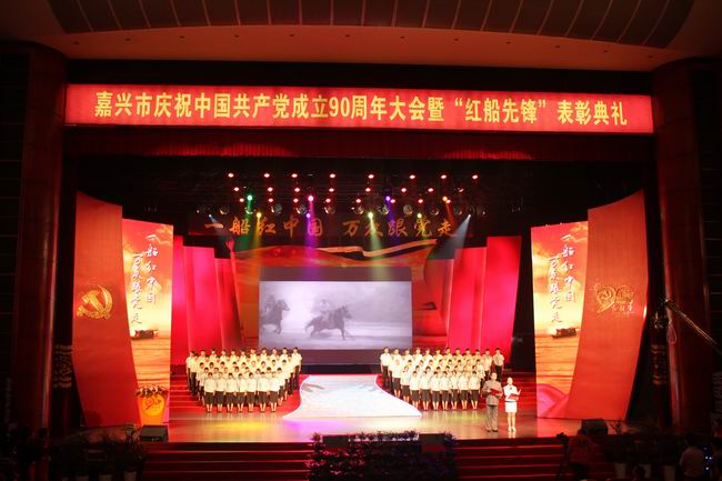 6月24日下午,嘉興市慶祝中國共產(chǎn)黨成立90周年大會暨“紅船先鋒”表彰典禮在嘉興大劇院隆重舉行。表彰典禮以“一船紅中國,萬眾跟黨走”為主題,“黨的生日——黨員的節(jié)日”為主線,通過“紅色記憶”“紅星閃耀”“紅旗高揚”三個篇章,回顧了黨的誕生歷程,詮釋了紅船精神“首創(chuàng)、奮斗、奉獻”的核心內(nèi)涵,表達了南湖兒女對黨的忠誠熱愛之情。