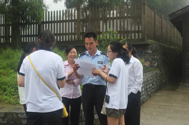 在參觀小井、水口、龍?zhí)镀俨?、黃洋界等紅色景區(qū)時(shí),大家深深被紅色文化與秀美山川所吸引。每到一處,同學(xué)們邊欣賞風(fēng)景、瞻仰革命勝跡,邊用手中的相機(jī)記錄下來。實(shí)踐期間,同學(xué)們積極向當(dāng)?shù)鼐用窈颓拜吜私飧嗟漠?dāng)?shù)貧v史文化知識(shí),了解中國(guó)革命的艱苦斗爭(zhēng)史和偉大的井岡山精神,同時(shí)10名同學(xué)分組向游客發(fā)放調(diào)查問卷,他們抓住在旅游大巴車上、風(fēng)景區(qū)及旅館休息的時(shí)間對(duì)紅船精神、井岡山精神等中國(guó)革命精神的傳承進(jìn)行了實(shí)地調(diào)查。學(xué)習(xí)旅游管理專業(yè)的潘星星同學(xué)一邊虛心向當(dāng)?shù)貙?dǎo)游請(qǐng)教,一邊結(jié)合自己所學(xué)的專業(yè)知識(shí)為游客們義務(wù)講解,并一展歌喉為他們唱起了紅歌,贏得一群上海游客的陣陣掌聲。
