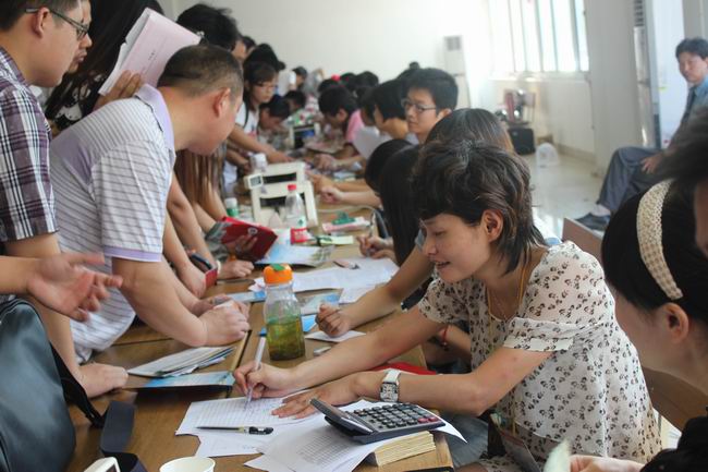 9月15日是新生報(bào)名的第一天也是最后一天。六大分院均在校園東西主干道上擺起長(zhǎng)龍陣,以方便學(xué)生報(bào)到注冊(cè)。財(cái)務(wù)管理、工程造價(jià)、國(guó)際貿(mào)易等相對(duì)熱門專業(yè)前報(bào)到者幾乎爆棚,相對(duì)冷門一些的專業(yè),如涉農(nóng)類、紡織類由于受家長(zhǎng)和學(xué)生認(rèn)識(shí)所限,盡管社會(huì)需求量大,報(bào)考人數(shù)仍然不多。