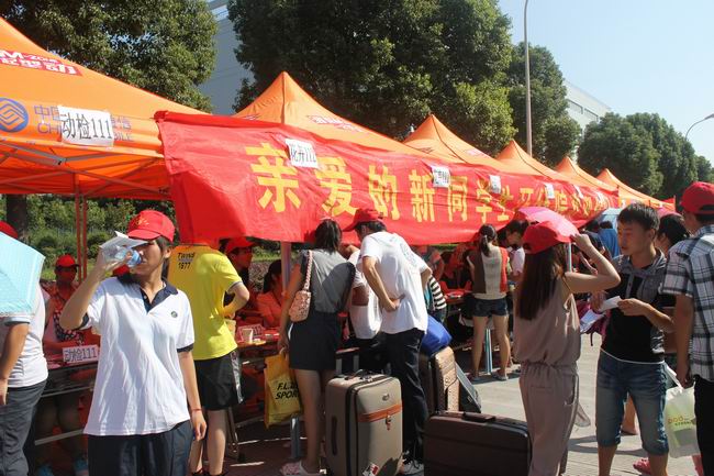 校園東西主干道上,匯成了車流、人流與物流的海洋,在交警、保安及志愿者的服務(wù)引導(dǎo)下,新生報(bào)到工作緊張而有條不紊。新生們從南門、東門接過(guò)迎新師姐分發(fā)的報(bào)到流程圖,紛紛前去報(bào)到注冊(cè)。據(jù)了解,我院自9月14日起就在嘉興高鐵站、老火車站、汽車西站、汽車北站設(shè)立迎新站點(diǎn),并調(diào)度大巴迎接前來(lái)報(bào)到的新生。