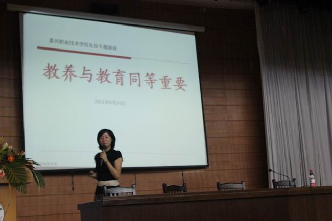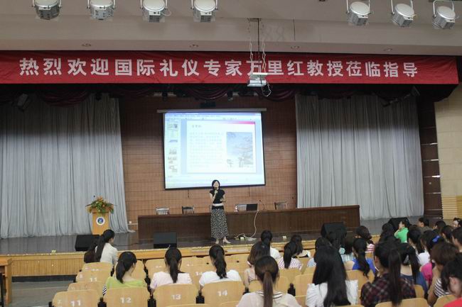 “禮生敬,敬生愛(ài),愛(ài)生和?!?span lang="EN-US">9月14日下午,學(xué)院二號(hào)樓報(bào)告廳內(nèi)濟(jì)濟(jì)一堂,由外語(yǔ)與貿(mào)易分院組織策劃的一場(chǎng)禮儀培訓(xùn)講座在此舉行。國(guó)際禮儀傳播者萬(wàn)里紅女士向一千多名師生就《教養(yǎng)與教育同等重要》的話(huà)題娓娓道來(lái)。